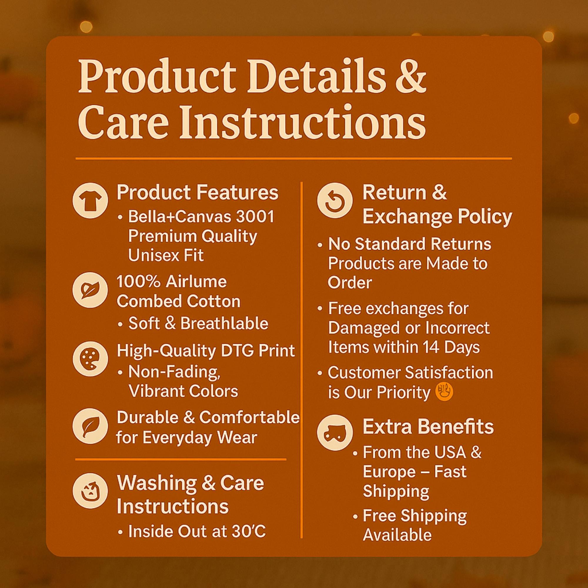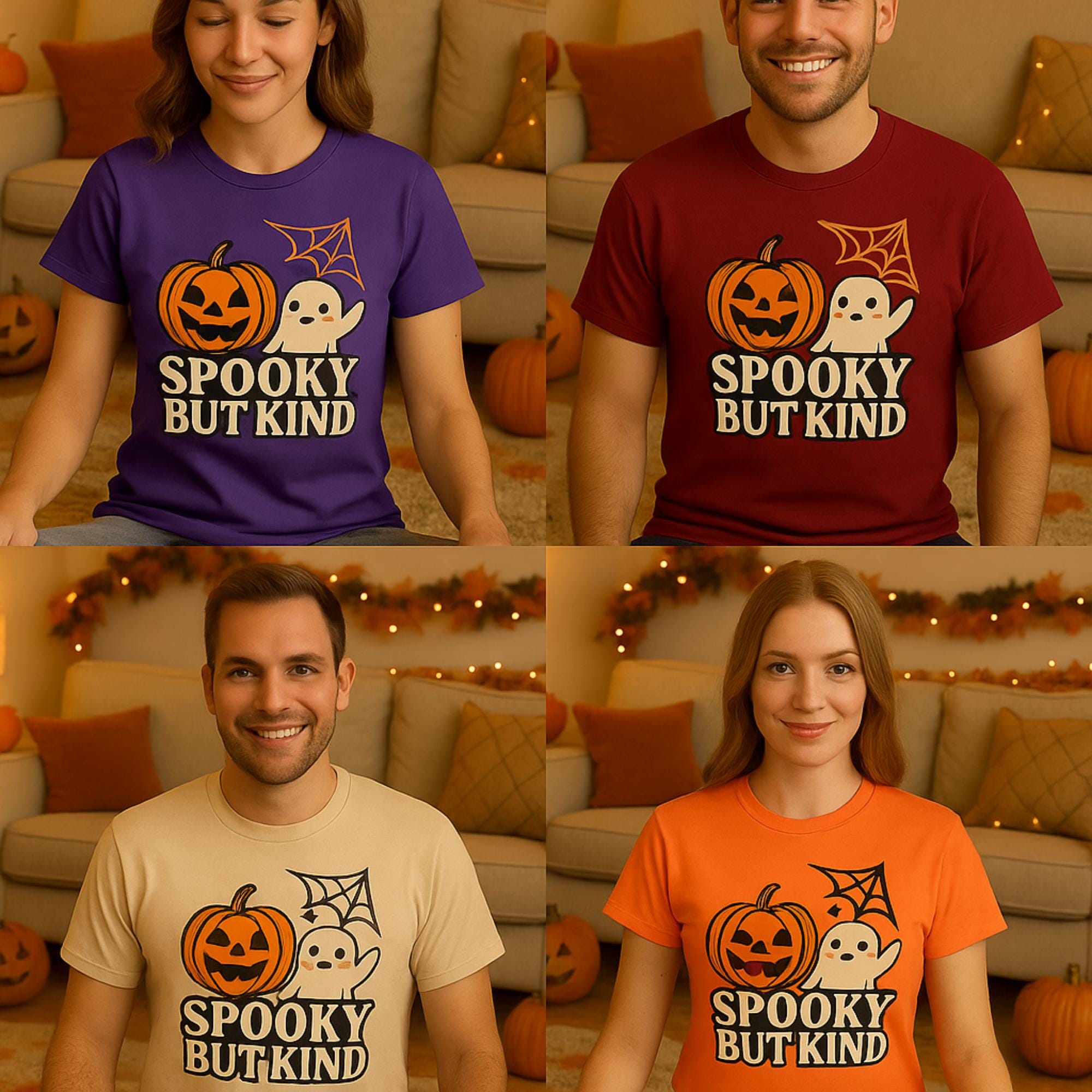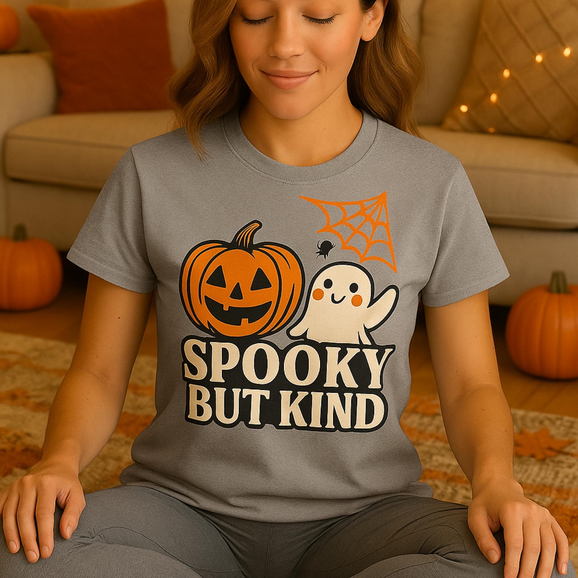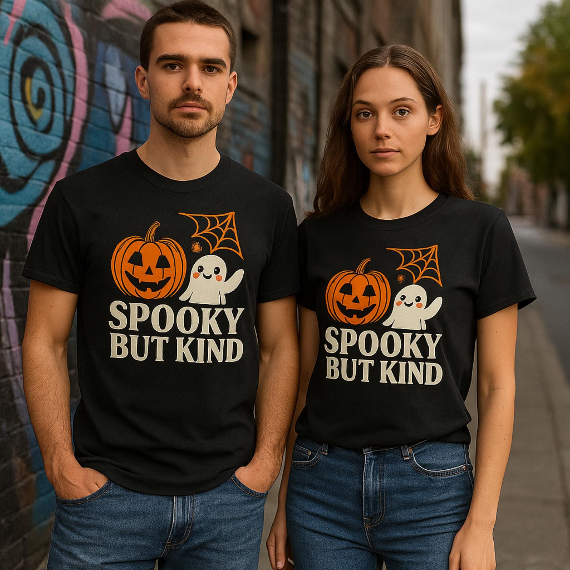Celebrate Halloween in style with this spooky graphic T-shirt featuring ghost, pumpkin and spider illustrations. This unisex cotton tee is soft and comfortable, making it perfect for parties, trick-or-treating and fall festivals. The playful ‘Spooky But Kind’ design adds festive flair without being too scary. Wear it on its own or layered under a jacket; it’s a versatile fall holiday top and a fun gift for anyone who loves Halloween. Shipping from Turkey with processing time 2–5 business days and delivery in 5–10 business days.